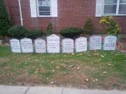Larry, a long time resident of Glen Oaks living next to the Oval built eight hilarious tombs all on his own and everyone stop and read by taking all their