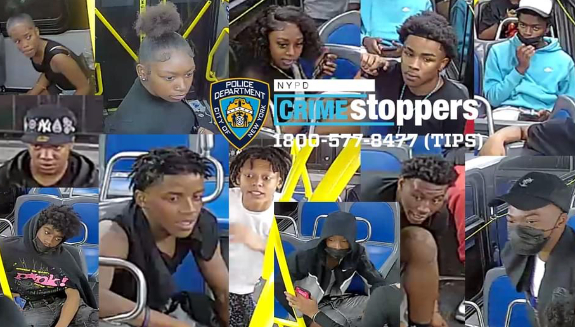 WANTED GANG ASSAULT: On 8/2/23 @ 10:00 PM NYPD 48 Precinct A 15-yr-old victim was approached by a group of unknown individuals on board an MTA bus in the vicinity of Southern Boulevard and East 176 Street. The individuals assaulted him causing physical injuries then fleeing on foot into Crotona Park. Any info call us at 800-577-TIPS or anonymously post a tip on our website crimestoppers.nypdonline.org
