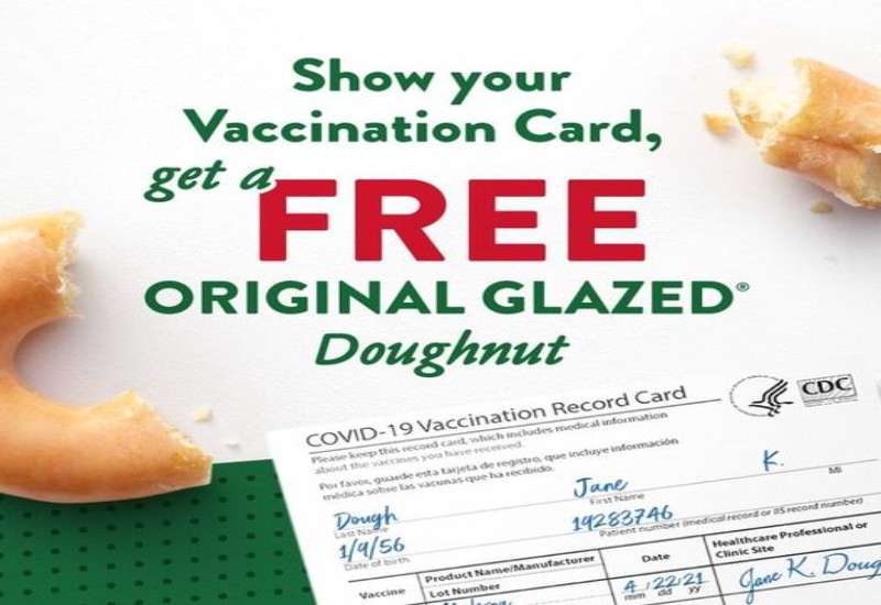 Krispy Kreme will give people who can show proof of vaccination one free donut a day for the rest of the year. Dunkin Donuts, McDonald's and others are reviewing the plan of their promotion to be announced soon.