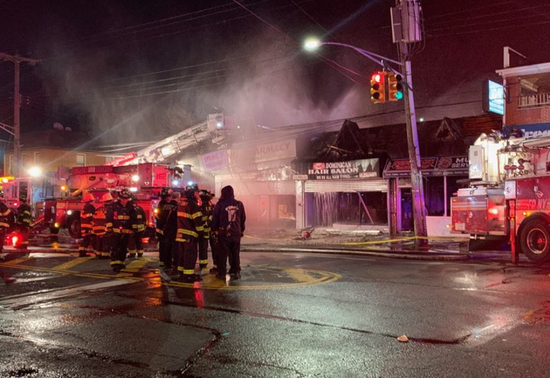 FDNY reported 4th alarm fire at 111-50 Springfield Blvd off 112 Avenue. This is a 3 story building with commercial business in the first floor. Two firefighters were seriously injured when the ceiling collapsed. The fire started around 2:30am. The cause of fire is under investigation.