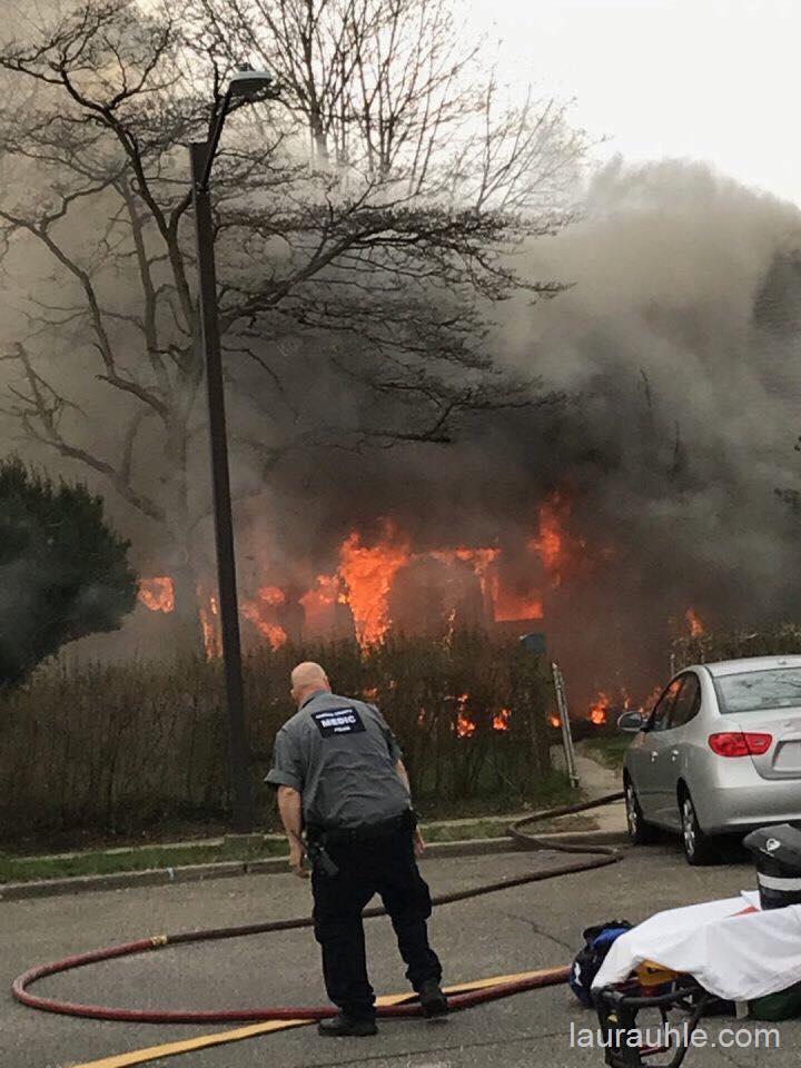 Hicksville - 15 Dove Street, firefighters are on the scene working on a heavy fire. It happened in the first floor of a private home. No injuries. Reported 12:30pm.