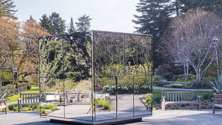 It's Yayoi Kusama infinity mirror room inside the NY Botanical Garden in the Bronx. Inside you can see infinite dots of light that change with the time of day and season whatever that means. All visitors, including members, need advance tickets for entry to the Garden. Tickets are now available for visit dates through August 1, 2021. Open to the public. Details at this link, https://www.nybg.org/visit/admission/