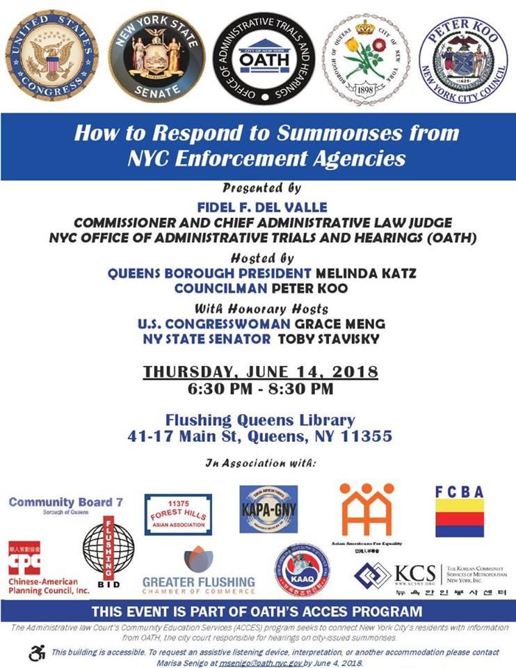 Thursday, June 14 at 6:30pm in 41-17 Main Street, Flushing library. Open to the public.