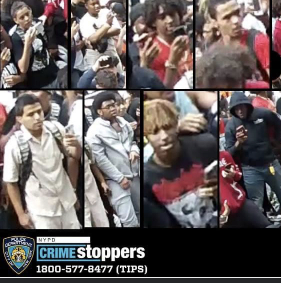 WANTED CRIMINAL MISCHIEF: On 8/4/23 @ 2:46 PM NYPD 13 Precinct  in front of 15 Union Sq West sixteen unknown individuals caused damage to an unoccupied vehicle by climbing on top & jumping on the vehicle while parked. Any info call us at 800-577-TIPS or anonymously post a tip on our website. crimestoppers.nypdonline.org Reward up to $3,500
