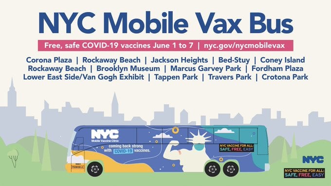 It's Wednesday and the NY governor is nowhere to find a press brief for unknown reasons. For NYC, the city is launching a pilot program to offer the vaxx to children 12 and up in some city schools, starting this Friday. Also, vaxx buses are traveling citywide. For giveaway, NY Aquarium is open with shots and free tickets in the future. As for the fed side, free beer on July 4. One beer for free. Vaxxs at sporting events, child care providers will get a free voucher to watch kids for free while parents go out to get the shot. In NYS, pharmacies will start vaxxing and the fed stated on Fridays to open 24 hours. POTUS goal is to vaxx 70% by July 4. Here is the link for vaxx bus schedules, nyc.gov/nycmobilevax Update - The NY governor just released a statement of press brief at 3pm today.