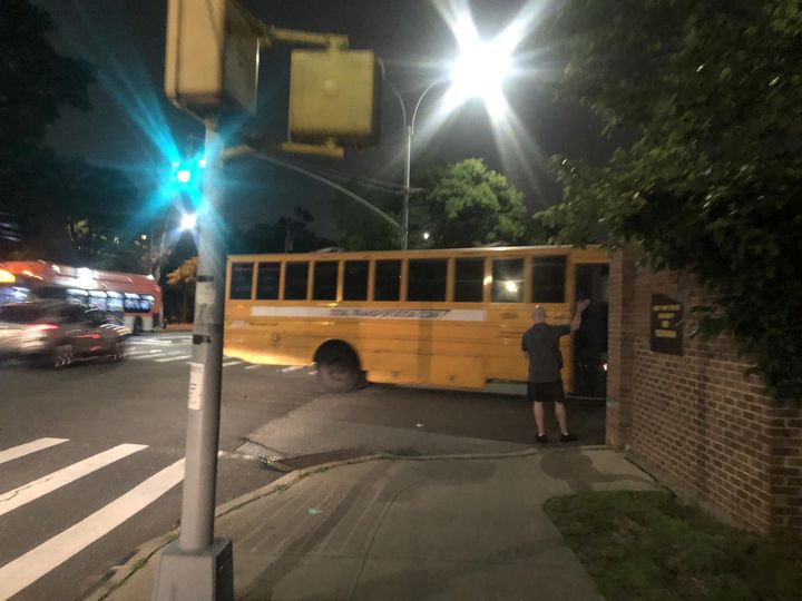 Buses have started arriving to the Creedmoor lot where migrants are coming tonight.