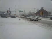 This is on the corner of Union Turnpike and Little Neck Parkway where vehicles are going slowly on both lanes of traffic. \