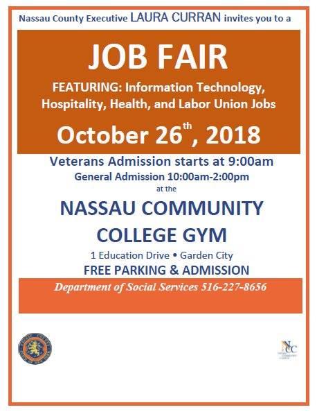 Friday, October 26 at Nassau Community College. Veterans admission at 9am and 10am for general. Open to the public.