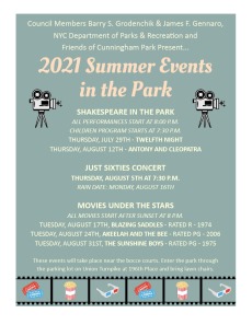 Also check the dates for movies and other events for the public at Cunningham Park.