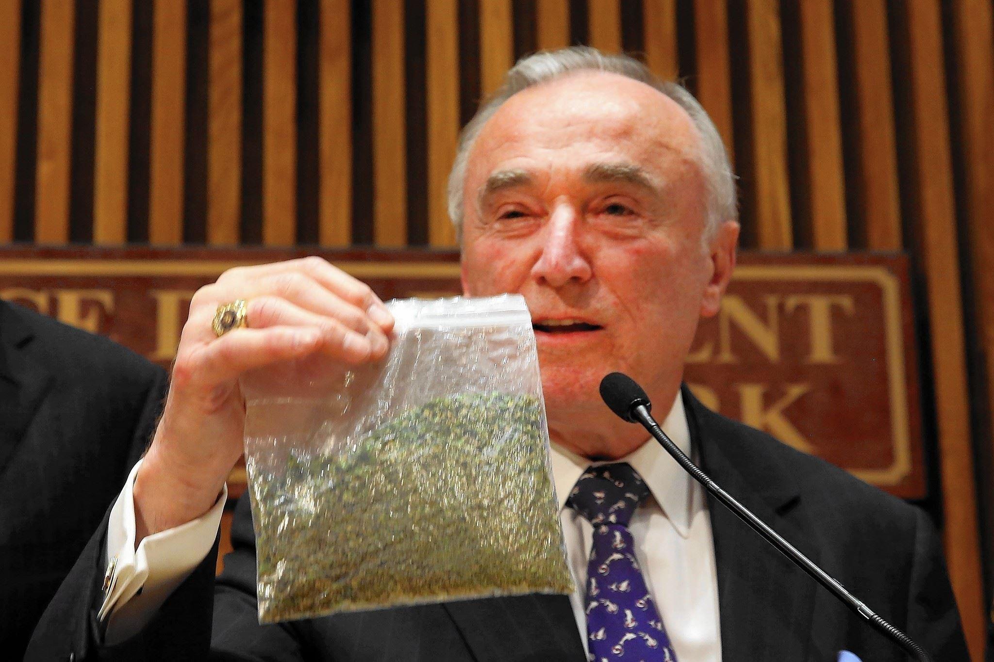 Nassau County Police arrested over 20 people on Hillside Avenue, Union Turnpike after Langdale Street and Little Neck Parkway borderline of Jericho/Jamaica Avenue by the Queens side for marijuana possession in one week span. In NYC, anyone can carry weed seen in the picture held by ex-NYPD Commissioner Bill Bratton without getting arrested. If seen smoking weed in public by police, arrest in NYC will take place. Also, If seen smoking by police in private places, warrant maybe issued in NYC based on the complaint. Police has been tracking down shady vehicles such as tinted windows and other suspicious on the border line especially at evening time. So in Nassau County, no possession of marijuana is allowed by law.