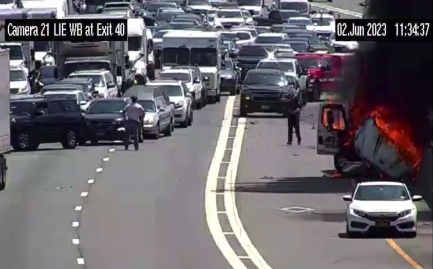 Long Island Expressway both eastbound and westbound closed at the Exit 40 due to an overturned vehicle ith entrapment.