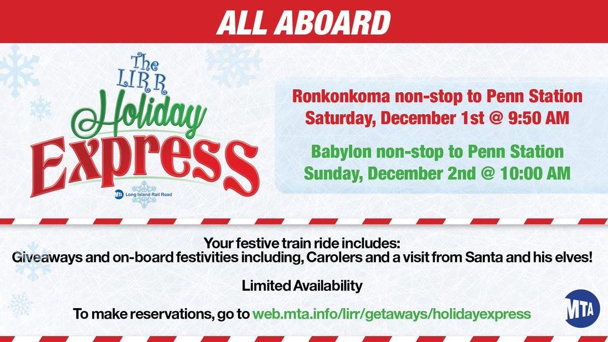 Reservations are taking for LIRR Hliday Express.