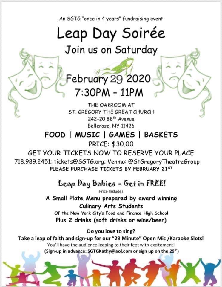 February 29 at 7:30pm in St Gregory's Church, 242-30 88 Avenue in Bellerose. Tickets are $30. Open to the public.