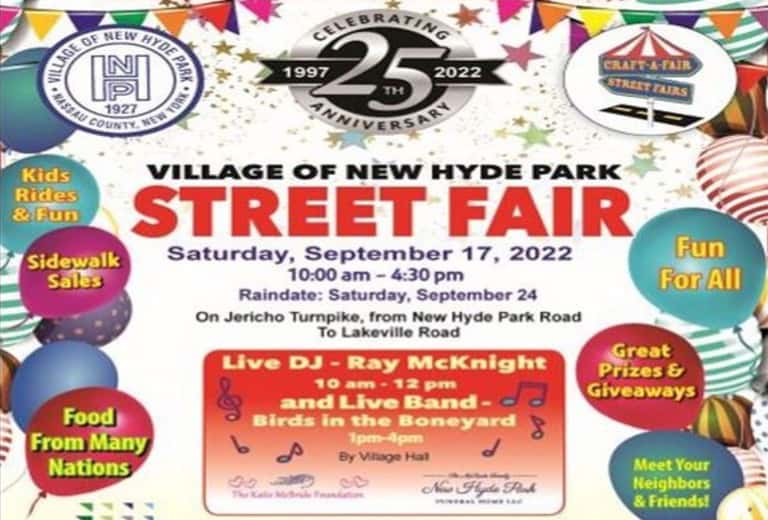 On September 17, New Hyde Park will have the annual street fair from 10am to 4:30pm on Jericho Turnpike from New Hyde Park Road to Lakeville Road.