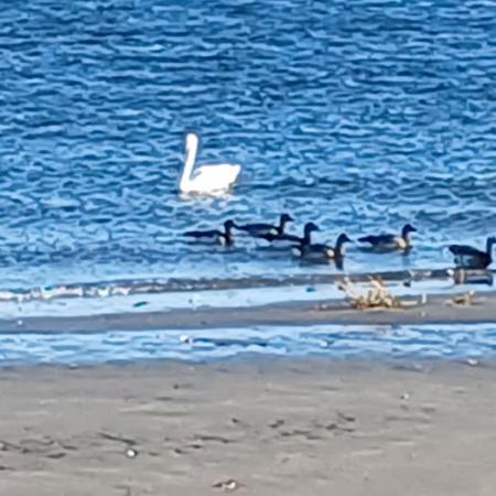 Now the neighbors are out there working to find the swan in the area. The swan is a local fixture seen with other birds in the water.