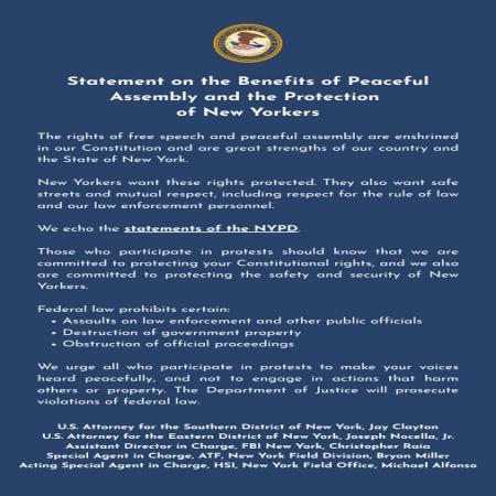 Meanwhile, the Dept of Justice issues a statement on the protests.