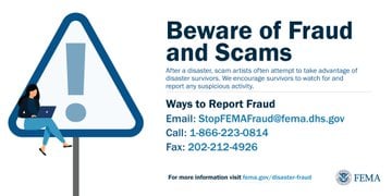 FEMA reported locals were scammed by fake applications to collect money from Hurricane Ida. According to FEMA, after someone files an application, the inspector will notify when coming to home to check to file the next set of paperwork. They usually call from out of the state area code. Now scammers manage to get the info. FEMA is now telling all to ask for the last 4 digits of the registration number to match the application for verification. If they cannot provide it, then call: 800-621-3362 to verify they are with FEMA. According to FEMA, the victims will have to refile all over again. Here is the link, https://www.fema.gov/press-release/20210913/survivors-beware-fraud-scams-flourish-after-disasters
