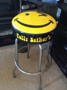 It happened in Franklin Square where it is that many fine things are thrown out and this one thing is such a thing. A fantastic piece of furniture from the famed NYC disco hot spot found its way into the suburbs and has been claimed by a collector. The new owner estimates its value at nines of dollars. While there is damage, it doesn't ruin the good time of the people who drank. "The stool will serve as a sitting place", talked the new owner.