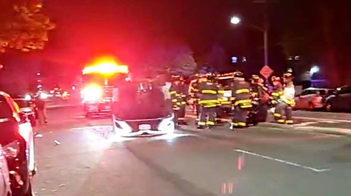 Police report multiple vehicle accident with one auto flipped in Queens Village. This is on Braddock Avenue southbound after Hillside Avenue. EMS is checking on the people involved. ESU will upright the vehicle.