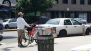 Man selling Italian Ice on a moving tricycle