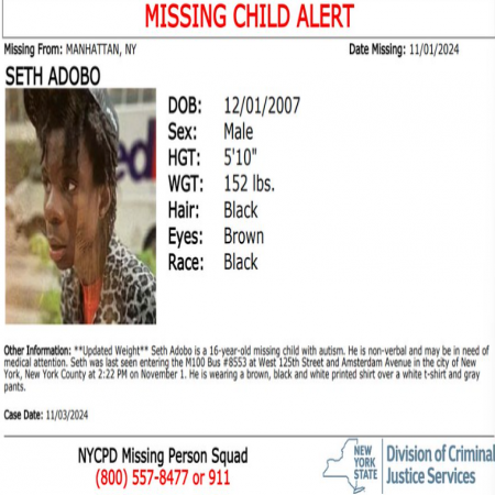 Seth Adobo, male/black/16, 5'10" & 152lbs, from Manhattan, New York.
