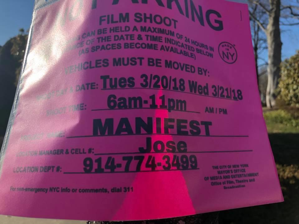 Tuesday to Wednesday on Union Turnpike between Springfield Blvd to Bell Blvd will be filming Manifest. Vehicles are advised not to park during 6am to 11pm.