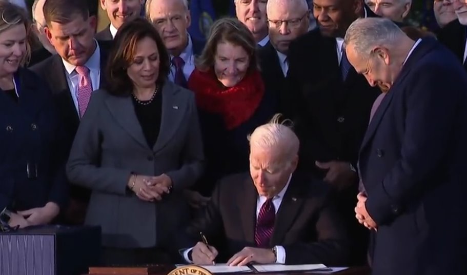 The NYC Mayor and state Governor are in DC to witness the $1 trillion infrastructure bill into law. The first package passed as bipartisan will give jobs to unions, roads, bridges, clean water, internet and clean energy future.