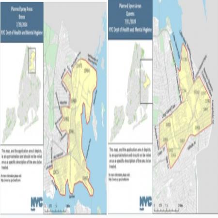 The NYC Dept of Health will conduct ground based spraying of mosquito adulticide to help prevent West Nile Virus between 8:30pm on Monday, 7/29 to 6am on Wednesday, 7/31. Application will conducted in parts of the following zip codes in the Bronx, 10461, 10462, 10464, 10465, 10469, 10473, 10475 and Queens, 11004, 11005, 11040, 11362, 11363, 11364, 11365, 11366, 11423, 11426, 11427 and 11432.