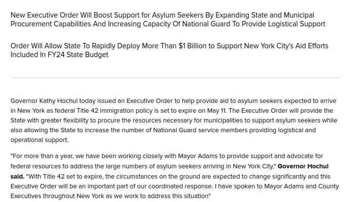 The NY Governor has declared a state of emergency as the Title 42 is expected to expire on Thursday for migrant arrivals in NYC.