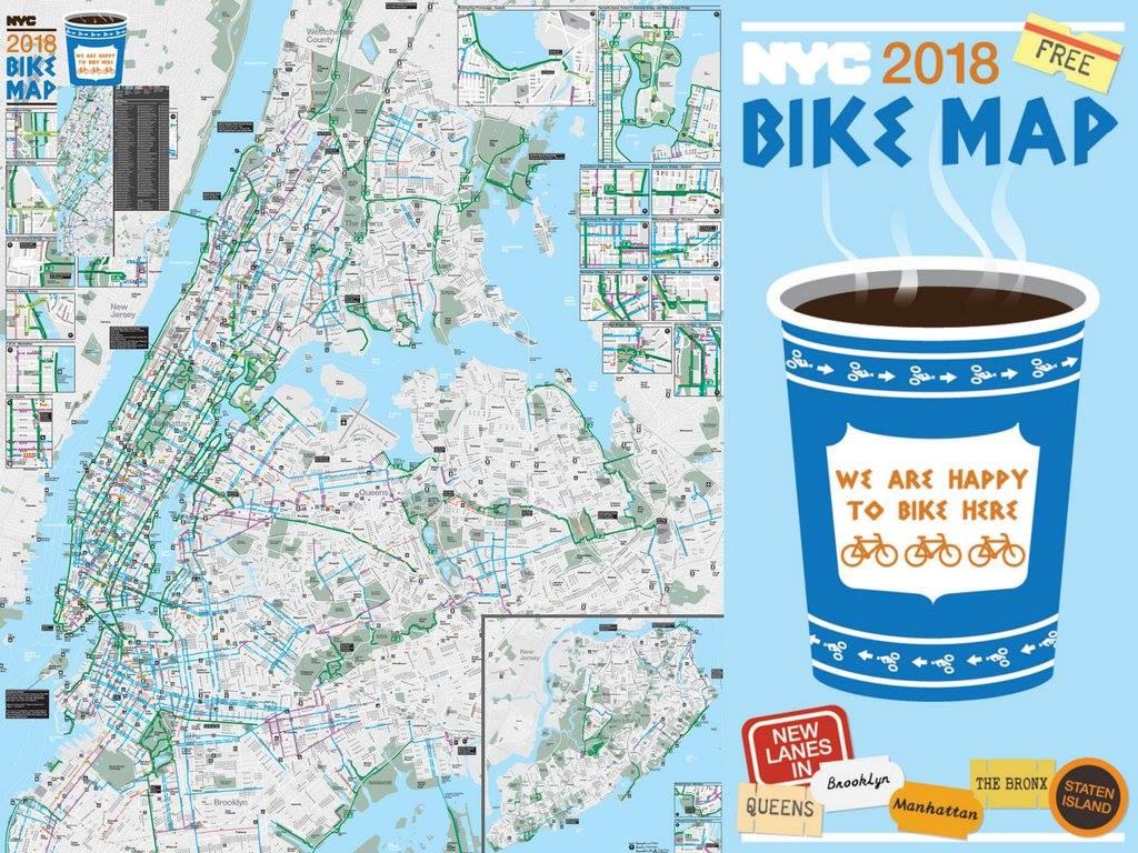 Like subway, NYC launched bike map in both print and digital. To get the print, call 311. More than 1,200 miles covered in NYC and new lanes are scheduled to add. For digital which can be downloaded is at this link, http://www.nyc.gov/html/dot/downloads/pdf/bikemap-2018.pdf