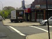 This commercial delivery truck is parked next to the bus stop but on the sidewalk. Assuming when a bus need to pick up or drop passengers,