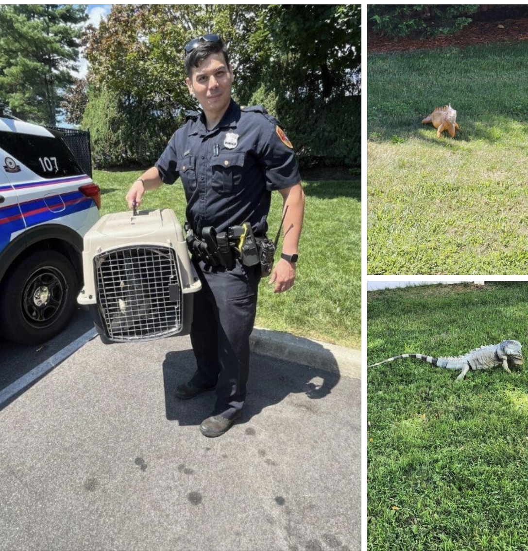 First Precinct police officers responded to a call regarding a 3-foot iguana outside a residence on Hawthorne Street in Deer Park on August 23 at approximately 11 a.m. When officers arrived, the iguana tried to escape, and fled into the yard of a residence on Ithaca Street.