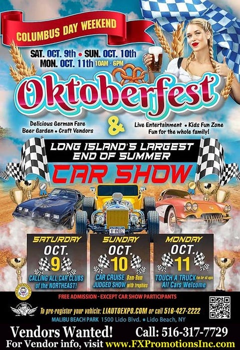 1500 Lido Blvd in Lido Beach. Oktoberfest with food and entertainment. Also, Long Island's largest end of summer car show and kids fun zone and fun for the whole family. This event is free and open to the public.