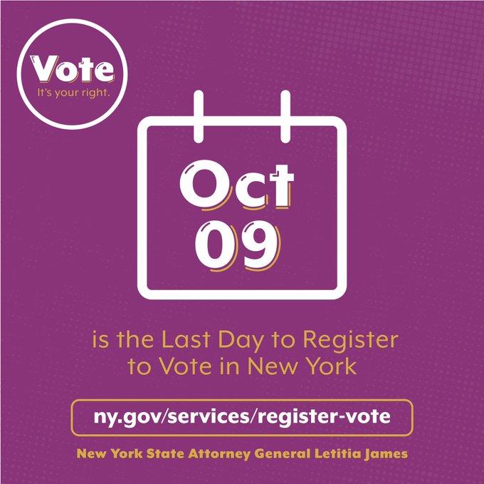 October 9 is the last day to register to vote in NY for this year's election. For NYC, as of February 2020, of 5.3 million registered voters, 10% have requested ballots according to Mike Ryan, executive director of BOENYC. 560,000 applications for absentee ballots were received and processed. For statewide, here is the link, https://www.ny.gov/services/register-vote