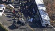 A man was killed Tuesday morning when his speeding pickup truck drifted into the path of a charter bus on Long Island and was struck head-on, authorities said.
