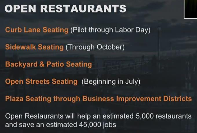 NYC Mayor de Blasio reported Phase 2 can open on Monday, June 22. This came after public backlash and outcry from city council members. At the same time, the mayor issued executive order for open restaurant program. There will be 5 options for restaurants with the first three starts on Monday. They are parking spaces for outdoor eating, sidewalk tables and backyard for the same. This is only for restaurants and not bars. Also for Phase 2, retail stores, hair salons and barbershops but not nail salons. real estate, car dealership, commercial buildings from office to cleaning.