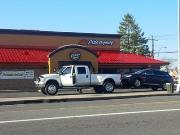 After posting countless boards and signs of vehicles that will be towed away for non-Pizza Hut customers, the franchise owner setup two tow trucks without signs and names by placing them in the parking lot.\