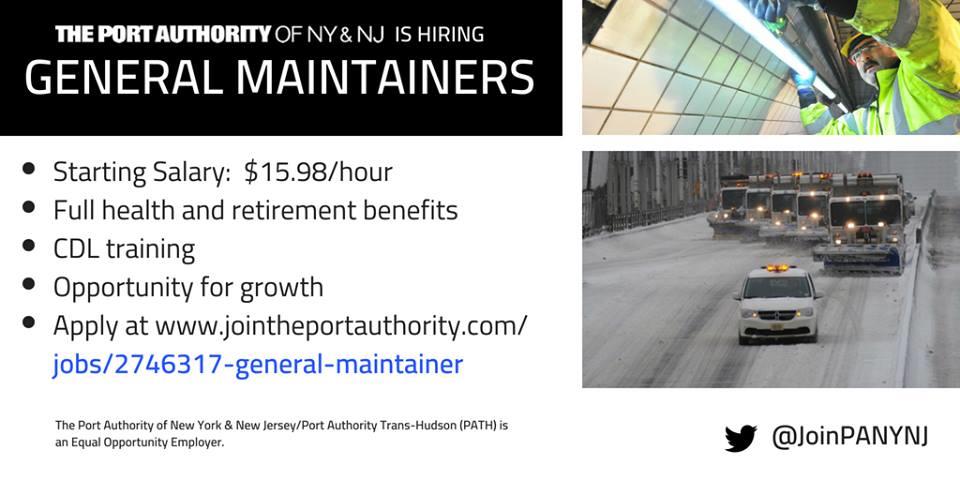 Port Authority is hiring general maintainers