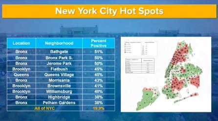 NYC hot spots announced with a new dashboard. Queens Village is on the list. The dashboard will show regions and daily percentage of positive diagnostic tests.