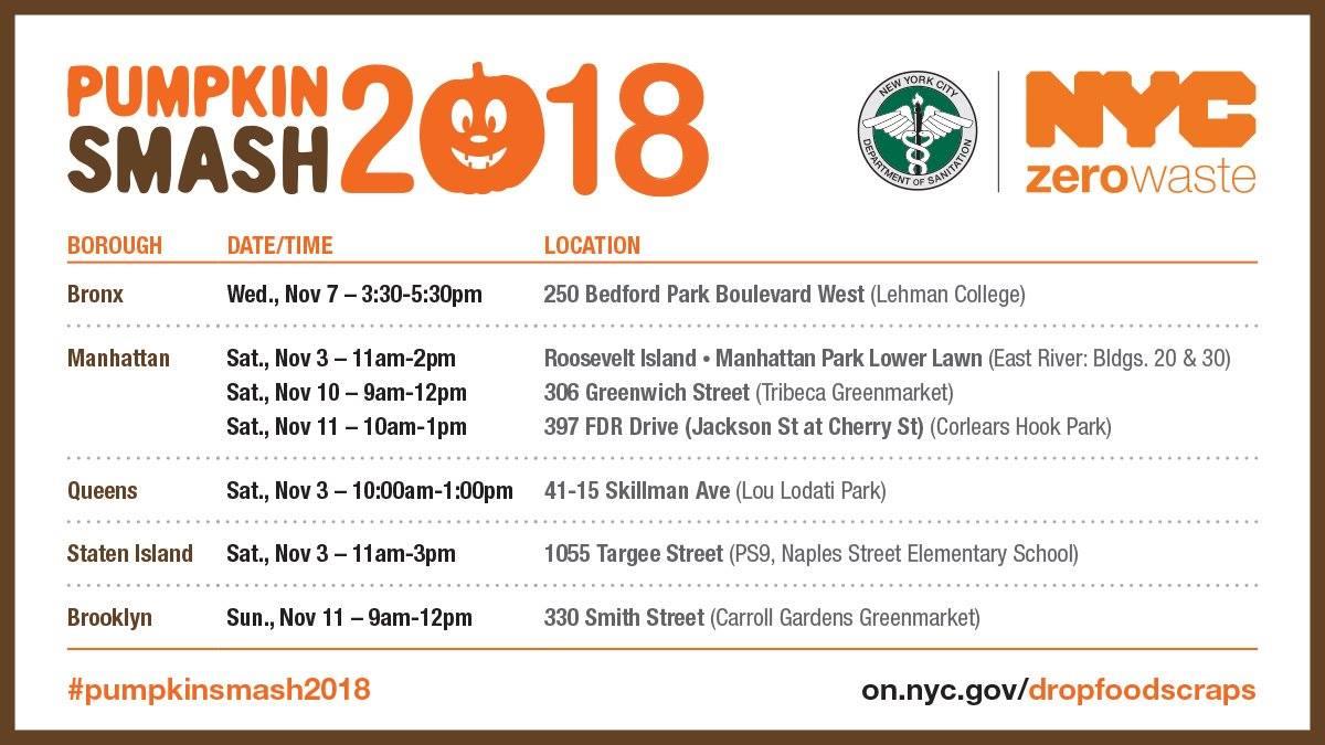 NYC Dept of Sanitation has released locations of pumpkin collections for converting them into compost.