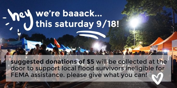 Well here comes the hard part. Local politicians who promised aid have many ineligible people who suffered damages from Hurricane Ida. For this, Queens Night Market stepped in to help. For the Fall Season opener on Saturday, 100% of the proceeds will go to the flood survivors in Queens. At the same time, over 30 vendors have agreed to support the families. Just show up with suggested donations of $5 and enjoy some cha-cha or salsa dance. Entrance is at NY Hall of Science in Flushing Meadows Corona Park from the Grand Central Parkway westbound. Here is the link, http://queensnightmarket.com/