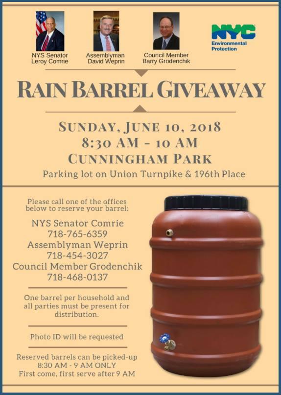 Rain barrel giveaway at Cunningham Park