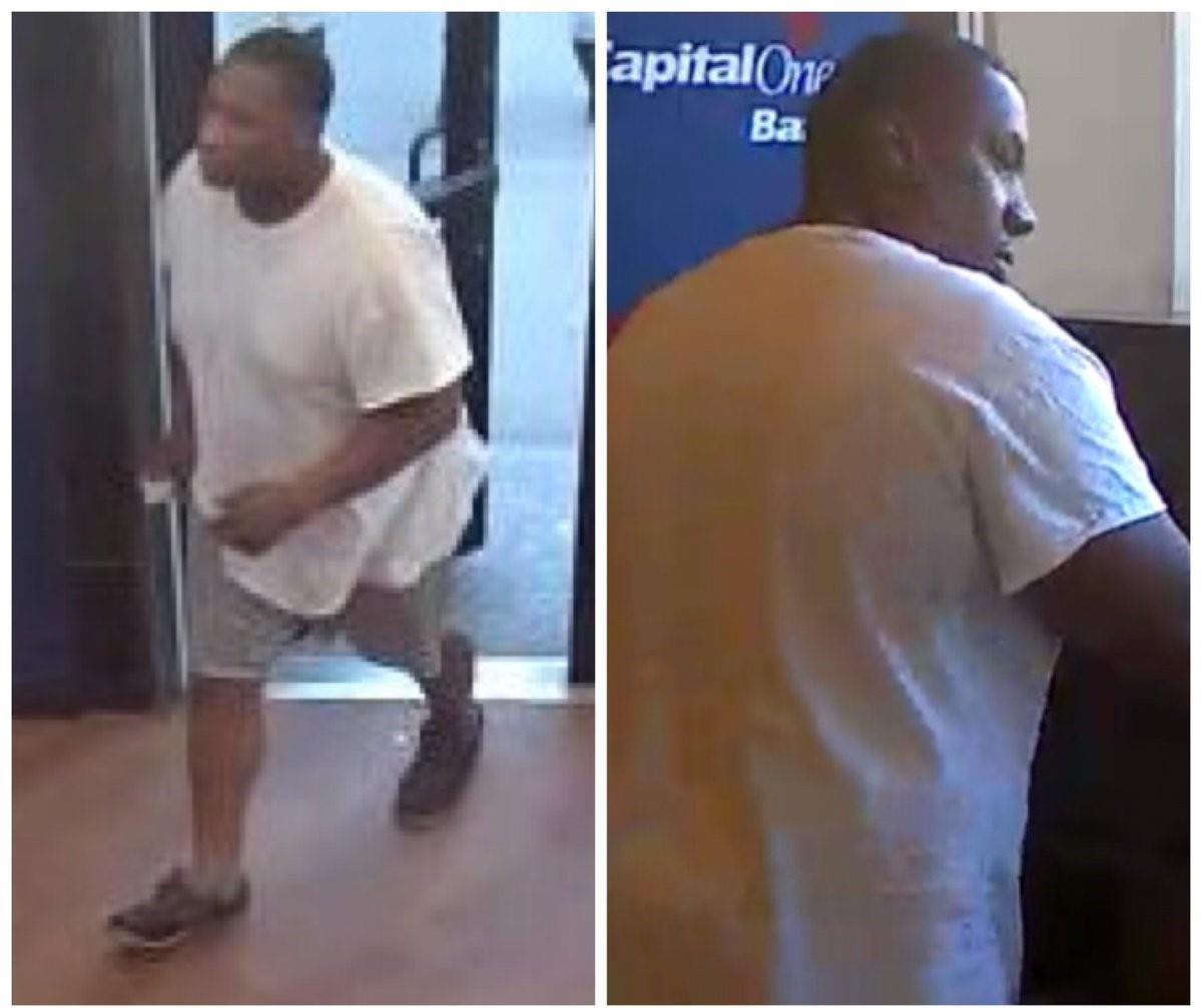 Police are reporting robbery at Capital One on the corner of Jamaica Avenue Avenue and Sutphin Blvd in Jamaica near the courthouses. The suspect, male, black, entered the bank and passed note demanding cash. Took off afterward with $200 cash toward Sutphin Blvd. Police described the suspect as male, black, 6'4", last seen wearing a white T-shirt and yellow shorts. Ongoing investigation. Update- pic released from surveillance.