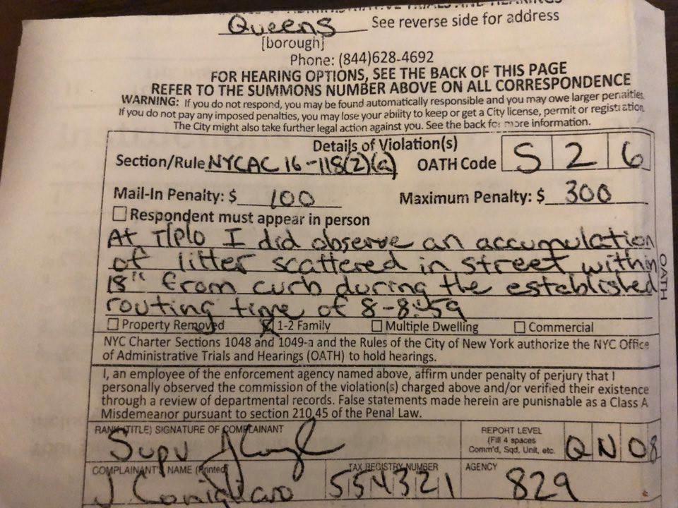 One major upset is from halal vendors that are on the sidewalk on Hillside Avenue but the actual owner of the premise receives the violations for litter on the street.