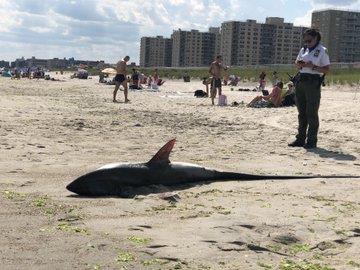 A body of dead shark washed ashore the Rockway Beach today after NYC Dept of Parks reported earlier. The officials are working to see if there are more sharks in the water before the beach opens to the public on Wednesday. Swimming is also allowed on the same day when all public beaches opens in NYC.
