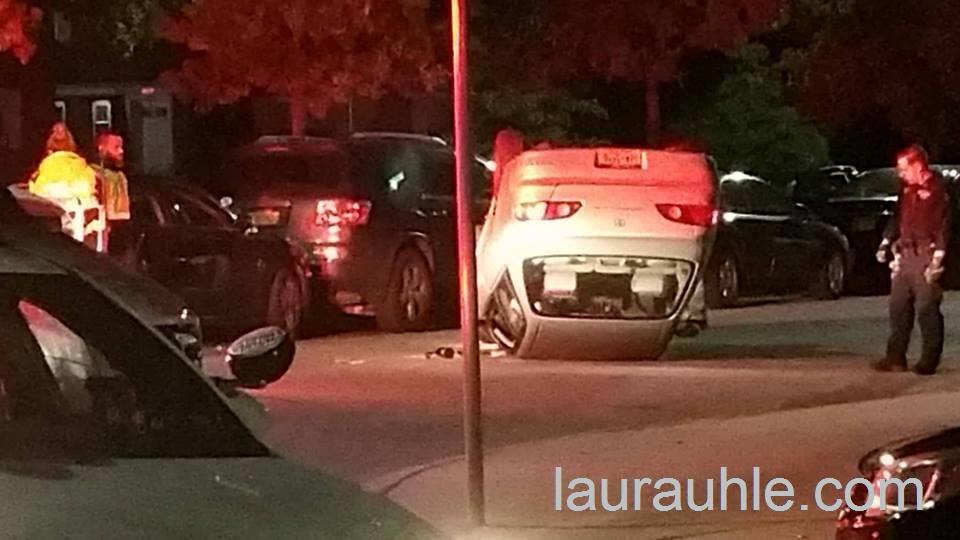 Single vehicle flipped upside down and driver took off in Glen Oaks