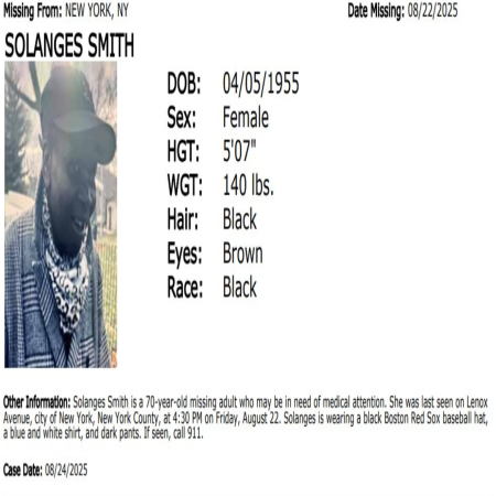 Solanges smith missing from New york