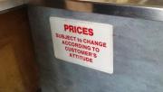 Some of the stores that has been a fixture for long time are tired of hearing price comparison and had enough by posting a sign stating prices can be changed depending on the attitude.