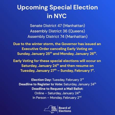 Due to the State of Emergency declared by the NY governor, dates have been changed for voters to notice.