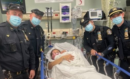 This afternoon, a father was heading to hospital with his wife for delivery when calls came in for an ambulance. This is in Jackson Heights. Four police officers worked to assist with the delivery of the baby boy outside bracing the weather much happiness to the new mother.